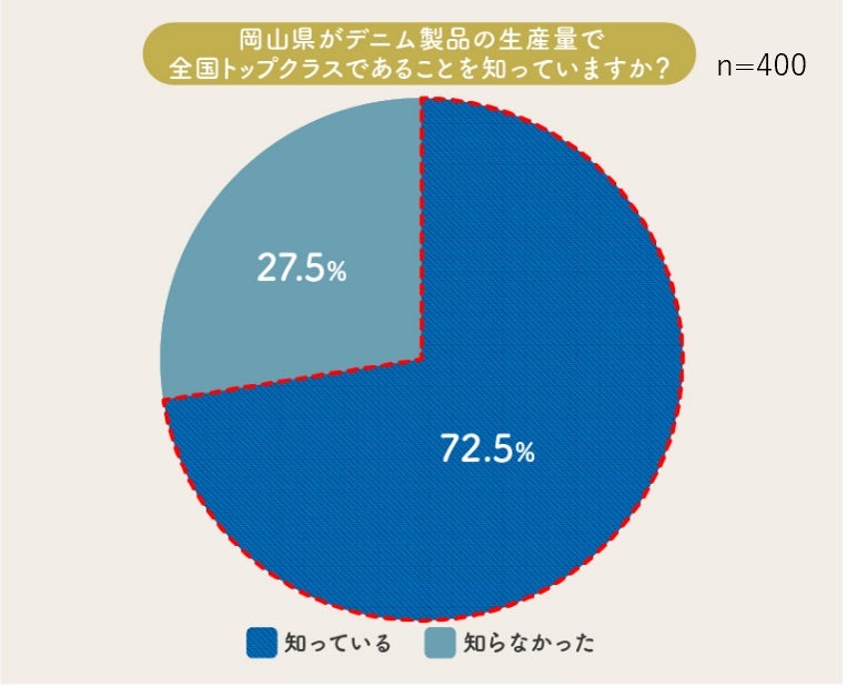 岡山県のデニム生産量が全国トップクラスであることを知っているのは全体の72.5%。