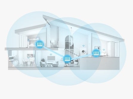 『HUAWEI WiFi AX3 NEW』を複数台ご利用いただくことで、メッシュWi-Fiシステムの構築が可能です。複数台のルーターでも同じSSID名で一体化することができ、ユーザー端末の位置に合わせて最適のルーターに自動で接続を切り替えます。Wi-Fi ホットスポットの切り替え遅延はたったの50msのため、家の中で移動しながらゲームをプレイしたりやオンラインビデオを閲覧していても、接続が途切れる心配がありません。