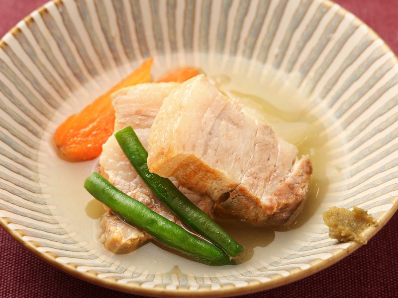 脂身の甘みが特徴的な「那須郡司豚」をじっくり塩煮込みにしました。豚肉本来の旨味をお楽しみください。