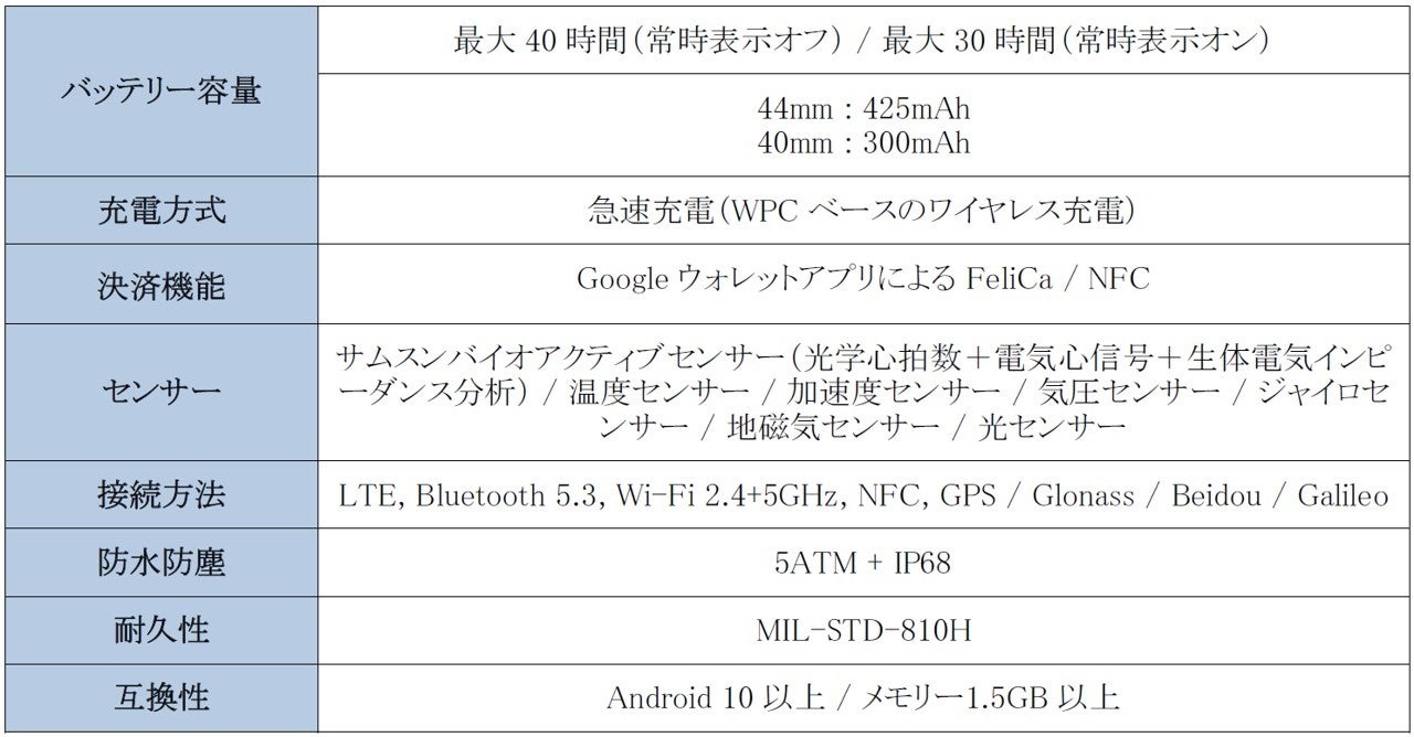 <主な仕様 : 「Galaxy Watch6」>