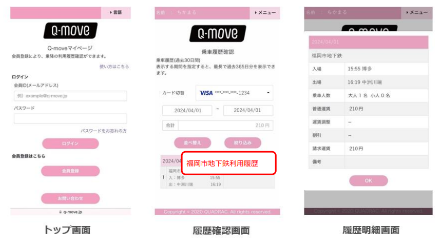 QUADRACのQ-moveサイトにアクセスし、マイページの会員登録手続きが完了しますと確認可能です。
