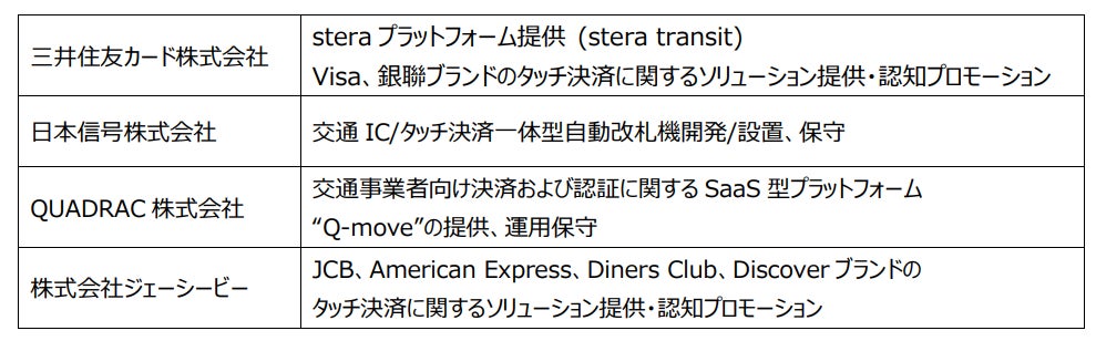 決済プラットフォーム「stera」は、キャッシュレス導入に際した課題を解決するため、三井住友カードが、GMOペイメントゲートウェイ・GMOフィナンシャルゲートおよびVisaと共同で構築した事業者向け決済プラットフォームです。「stera transit」は、「stera」の決済プラットフォームと国際ブランドの非接触決済「タッチ決済」を活用した公共交通機関向けソリューションです。現金・事前チャージの必要がないという消費者の「利便性向上」に加え、「感染症予防対策」「インバウンド受け入れ環境の整備」「地域のキャッシュレス決済促進」など、交通分野にとどまらない幅広い効果も期待されます。また、「stera transit」の技術は、MaaSやスマートシティの認証基盤としても活用できます。今後も、全国各地で導入を予定しております。