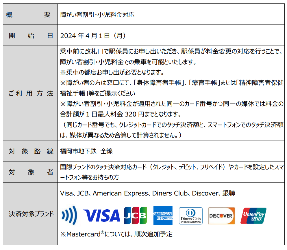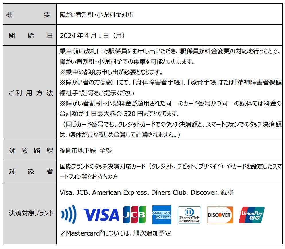 「福岡市地下鉄」にてクレジットカードやデビットカード等のタッチ決済による乗車サービスを本格的に開始します