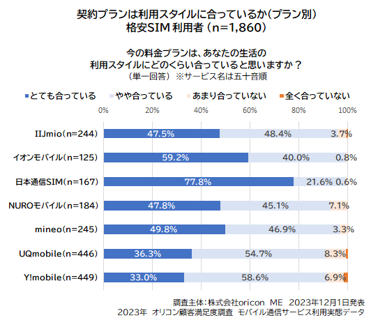 ■契約プランは利用スタイルに合っているか:「とても合っている」は【日本通信SIM】が最多 77.8%