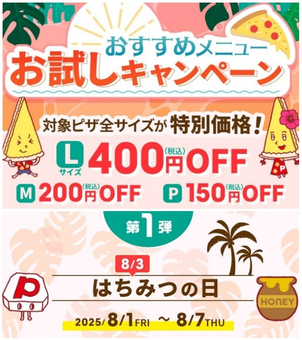 おすすめメニューお試しキャンペーン!!『ピザーラ夏フェス』 第1弾「はちみつの日」!!ハチミツをかけて楽しむ2商品がお得!!