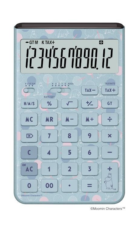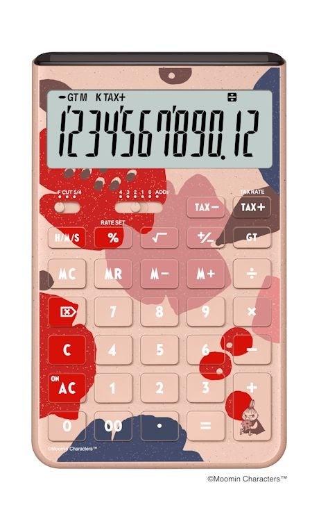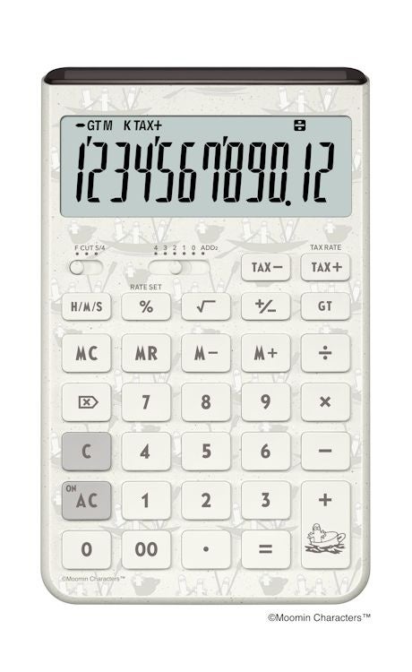 今回ご案内します『JT-200T-MM』は、「ムーミン」に登場するキャラクターの世界をデザインした電卓です。「Comfy」シリーズの特長である卓上で使いやすいジャストサイズをベースに、各キャラクターに調和する色味とパターンをボディ全体に施しました。