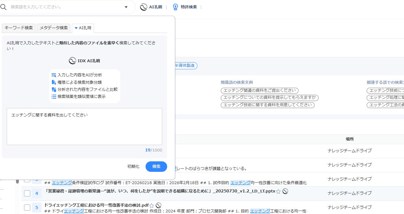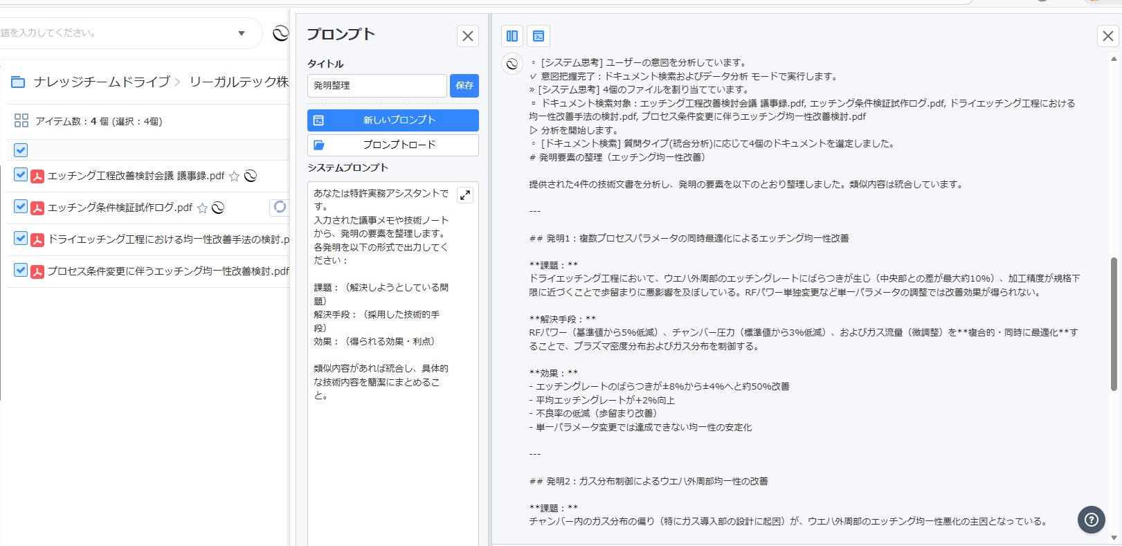 AI IPGeniusは、企業内に蓄積された非構造データを対象に、検索・要約・解析を一体的に行うAIナレッジ基盤である。