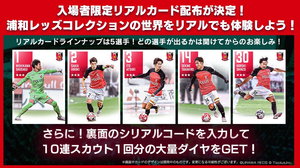サービス開始を記念して、11月12日(日)に埼玉スタジアム2002で開催される2023明治安田生命J1リーグ 第32節 浦和レッズvsヴィッセル神戸戦にて、浦和レッズコレクションのデジタルトレカがリアルカードになった限定リアルカードを入場者全員に配布することが決定いたしました。