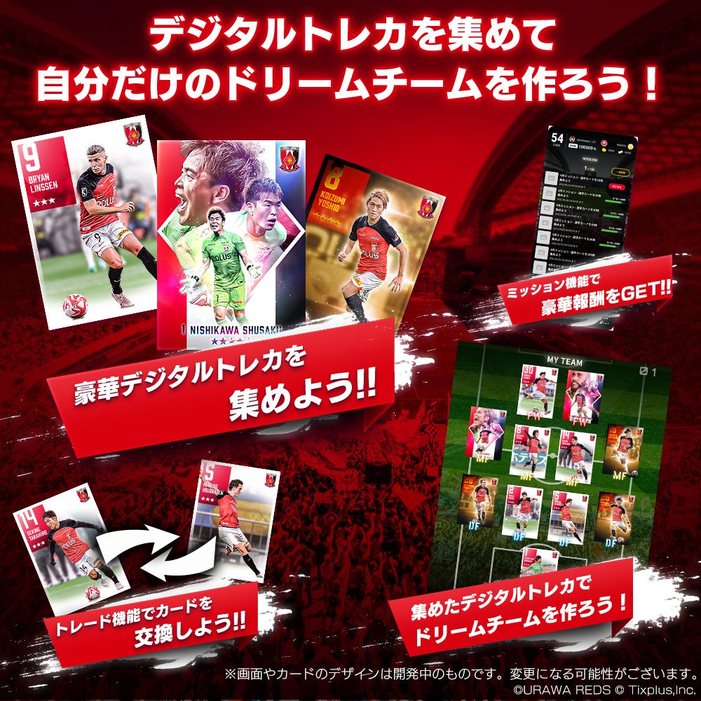 浦和レッズの選手たちの白熱したプレーシーンを豪華デザインのデジタルトレカでお届け。レア度に応じて趣向を凝らしたデザインで制作された選手トレカを収集しながら、数々のミッションをクリアし、サポーター同士でランキングを競い合う、浦和レッズサポーターの皆さまが毎日楽しめるサービスを提供いたします。迫力あるプレーシーンを中心に、選手のオフショット等、普段とは違った一面もデジタルトレカを通じてお届けいたします。