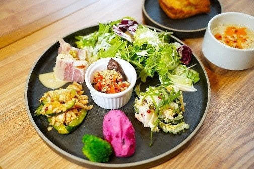 ① アーモンドミルクドレッシングを使用したサラダ・季節のデリセット 1580円(税込)