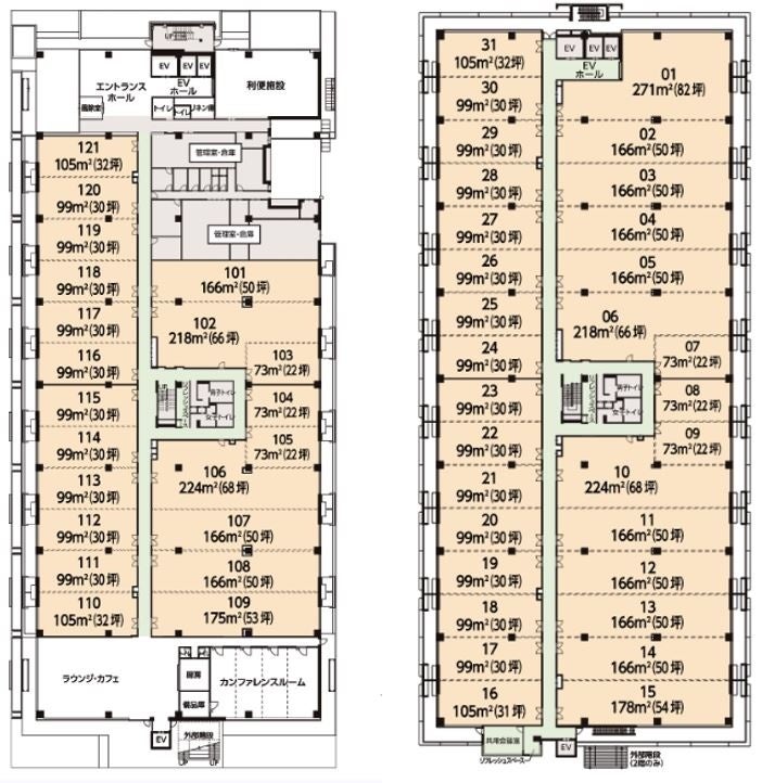 ・コンセント・シンク等を予め用意し、初期費用を抑えて直ぐに入居できる70~100㎡程度の区画をスタートアップ企業向けに用意