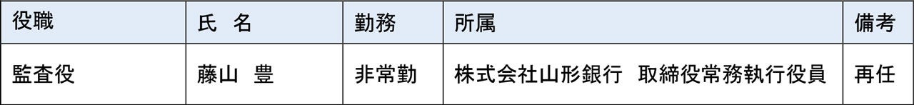 役員人事に関するお知らせ株式会社モンテディオ山形2026年4月28日 16時07分いいね!数を読み込み中です株式会社モンテディオ山形では、2026年4月28日に開催した第13回定時株主総会、及び臨時取締役会において、下記の通り役員を選任いたしましたのでお知らせします。 ※ 任期は2025年度決算に係る定時株主総会終結時から、2026年度決算に係る定時株主総会終結時まで ※ 任期は2024年度決算に係る定時株主総会終結時から2028年度決算に係る定時株主総会終結時まで ※ 任期は2024年度決算に係る定時株主総会終結時から2028年度決算に係る定時株主総会終結時まですべての画像種類経営情報ビジネスカテゴリスポーツダウンロードプレスリリース素材このプレスリリース内で使われている画像ファイルがダウンロードできます
