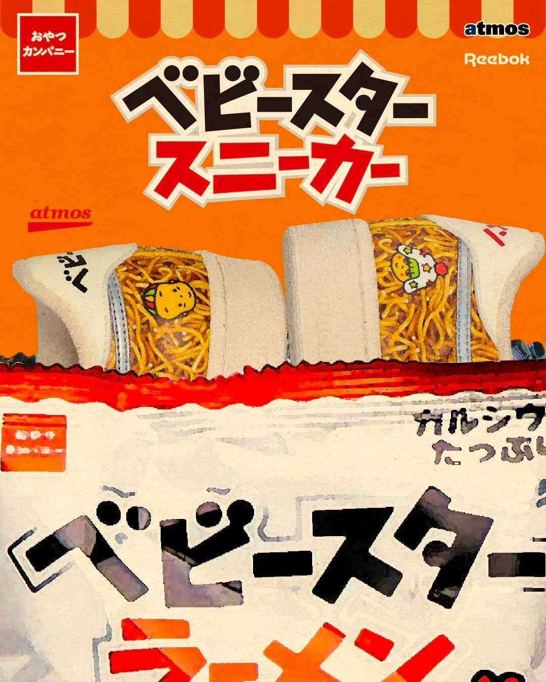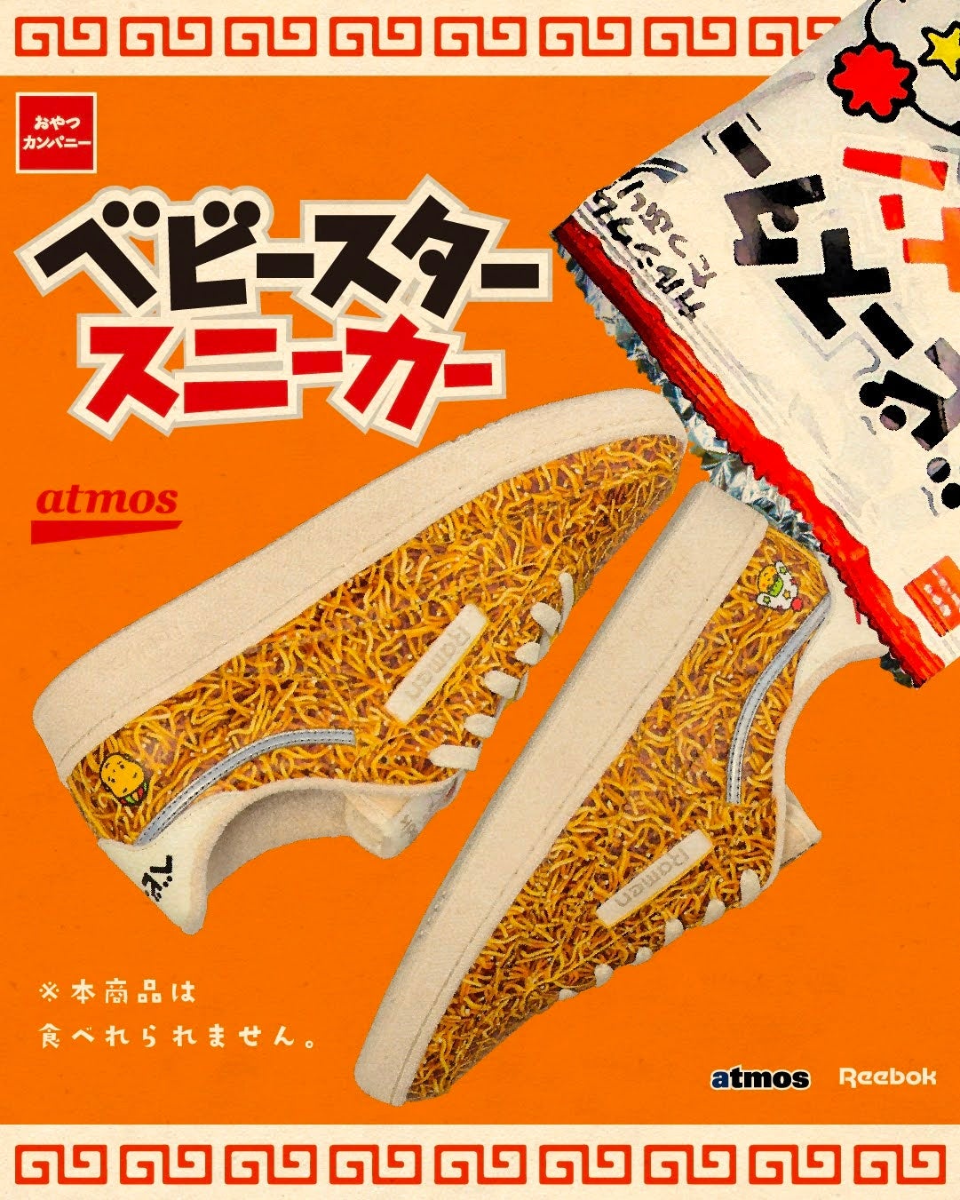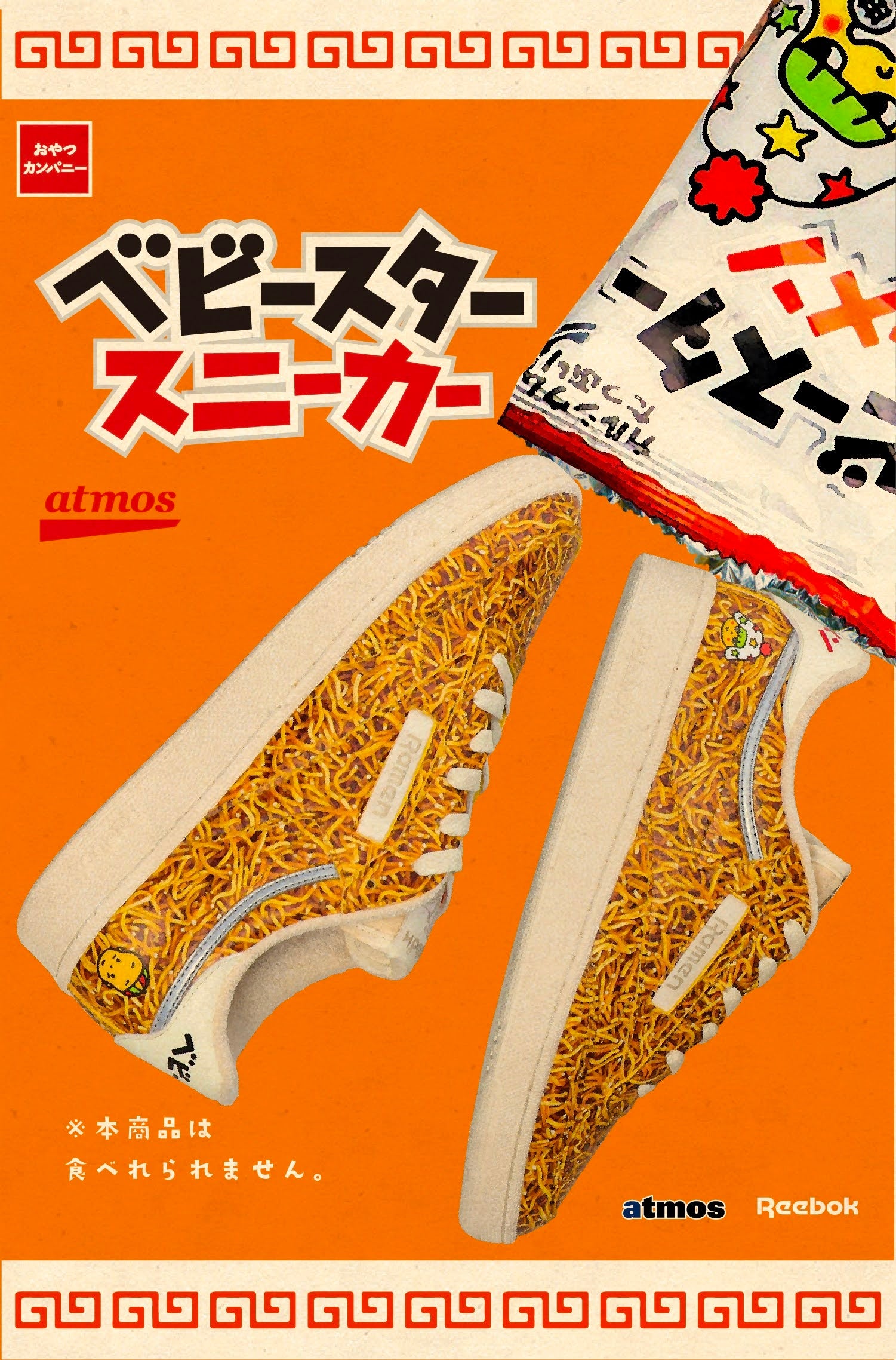 異色のトリプルコラボスニーカー第2弾「atmos × ベビースターラーメン × Reebok CLUB C」が登場。