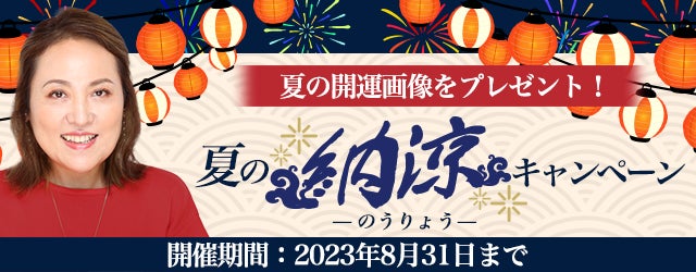 『夏の納涼キャンペーン』では、古来より夏の暑さを忘れようと工夫を凝らしていた日本の「納涼」の文化にちなんで、あなたが元気に夏を乗り切れるよう、キャンペーン期間限定の「夏の開運画像」をご用致しました。キャンペーン対象鑑定を占って頂くと開運画像をGETできます。ぜひ、この機会に大串ノリコの占いであなたの夏の運気を上げていきましょう!