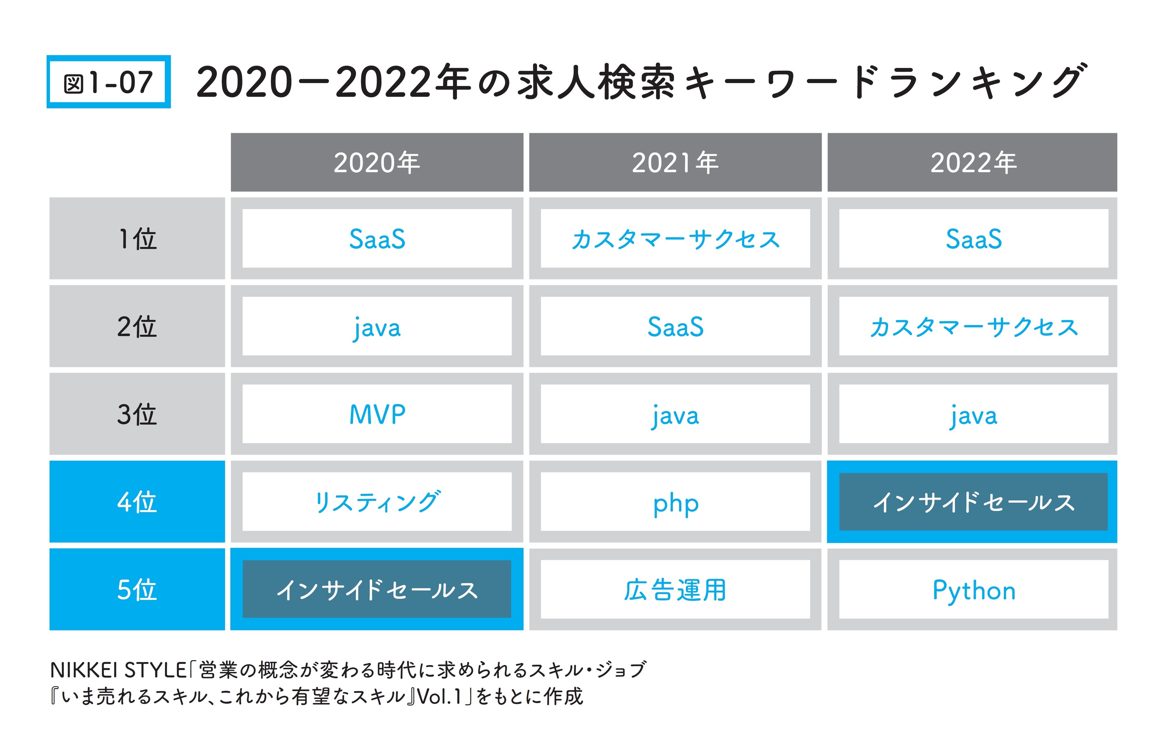 インサイドセールスはこれからの時代における営業職のキャリアとしても人気が高まっています。「これから有望なスキル」の求人検索ランキングでは、2022 年では4位にインサイドセールスがランクインしています。