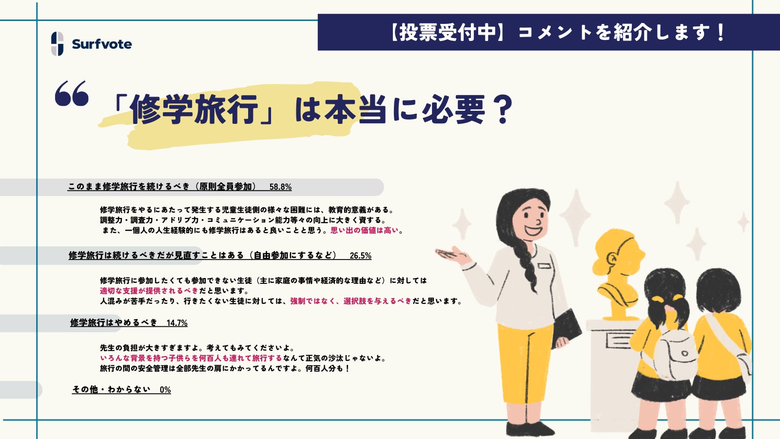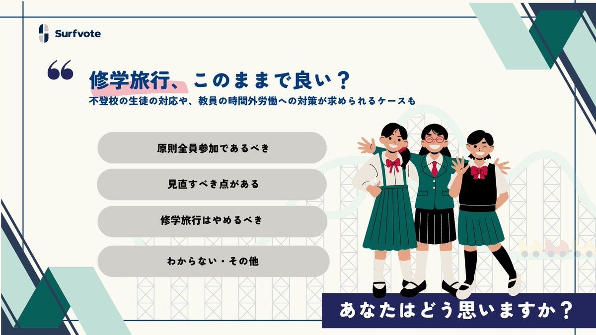 【修学旅行は本当に必要だろうか?】Surfvoteで意見を募集中