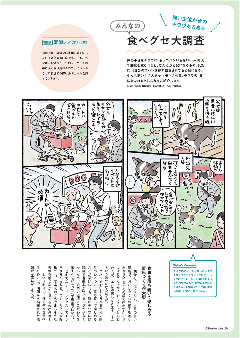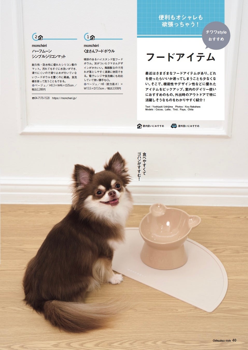 大特集「となりのチワワの食事情」の他、ぐっとおとなっぽい印象にしてくれる“くすみカラーコーデ”を集めたファッションコーナーや、一生懸命に散歩をする姿が愛らしいとSNSで話題の「ぽっちゃん」特集、など見どころ満載です!