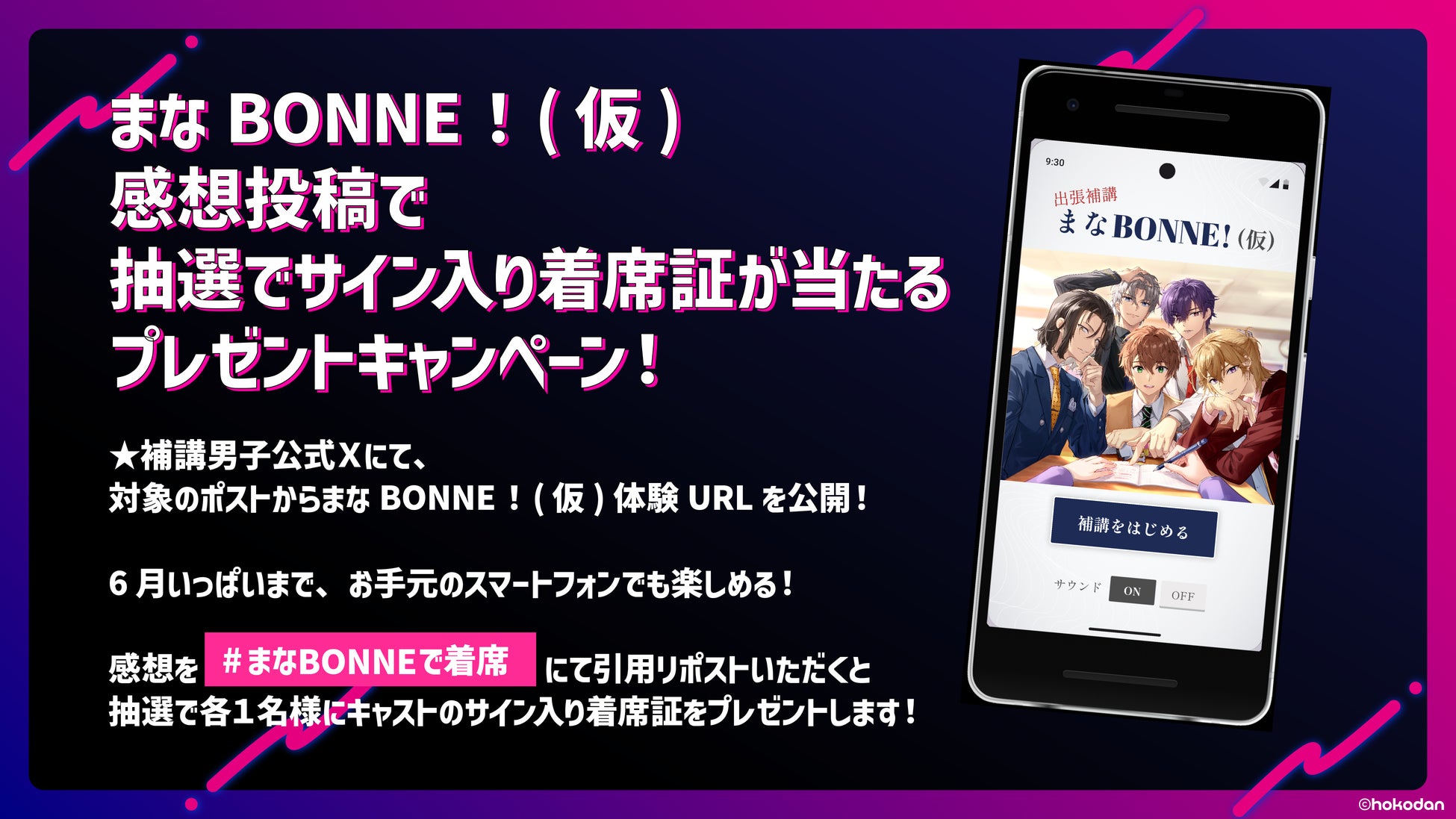 公式Xから #まなBONNEで着席 をつけて感想を引用リポストで投稿すると抽選で各1名様にキャストのサイン入り着席証をプレゼント!
