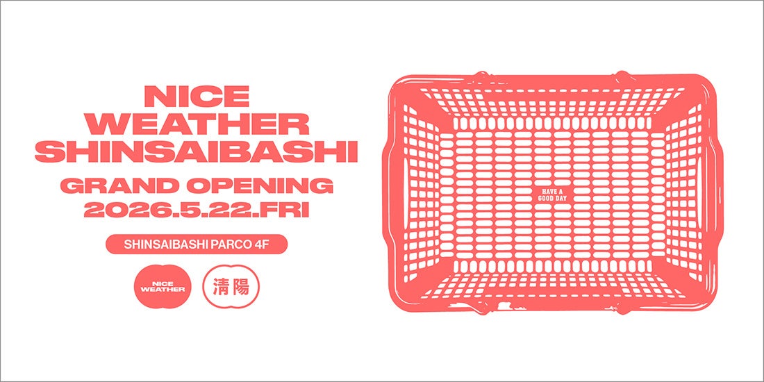 株式会社ユナイテッドアローズ(代表取締役 社長執行役員 CEO: 松崎 善則、本社所在地:東京都渋谷区)は、韓国発のライフスタイルセレクトショップ「NICE WEATHER(ナイスウェザー)」の新店舗として、心斎橋店を2026年5月22日(金)にオープンします。また、オープンを記念して、「Kizuna AI(キズナアイ)」とのコラボレーションによる限定Tシャツ5種を発売します。韓国発のライフスタイルショップ「NICE WEATHER」と、日本発のバーチャルアーティスト「Kizuna AI」による国やジャンルを越えたコラボ企画です。