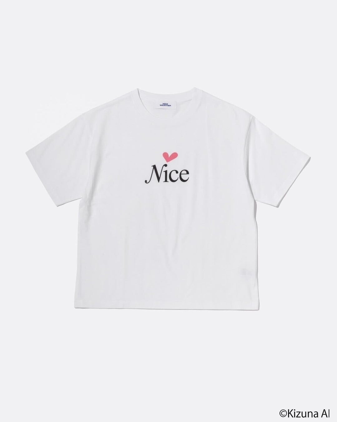 「Kizuna AI」のアイコンであるハートと「NICE」のロゴを組み合わせた「NICE WEATHER」オリジナルの1着。