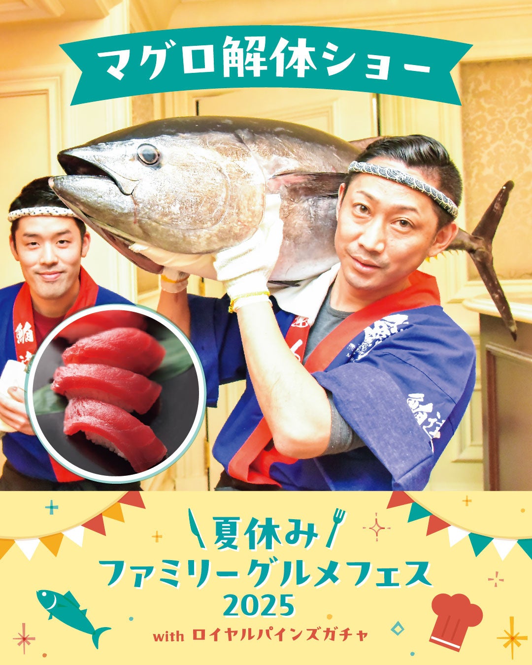 ソラーレ ホテルズ アンド リゾーツ株式会社(所在地:東京都港区、代表取締役社⻑:井 上 理)が運営するロイヤルパインズホテル浦和は、8月9日(土)・10日(日)に開催される「夏休みファミリーグルメフェス2025with ロイヤルパインズガチャ」のディナーチケット付き宿泊プランを2025年6月17日(火)15:00~販売開始いたします。8/9・10泊の各日10室限定販売。翌朝食も付いたお得な宿泊プランとなっております。夏休みファミリーグルメフェスではホテル自慢のビュッフェディナーをお召し上がりいただきながら、マグロ解体ショーやライブキッチン、キッズシェフ体験、宿泊券やレストランお食事券などが当たるガチャをお楽しみいただけます。夏休みのグルメイベントとしていかがでしょうか?皆様のお越しをお待ちしております。