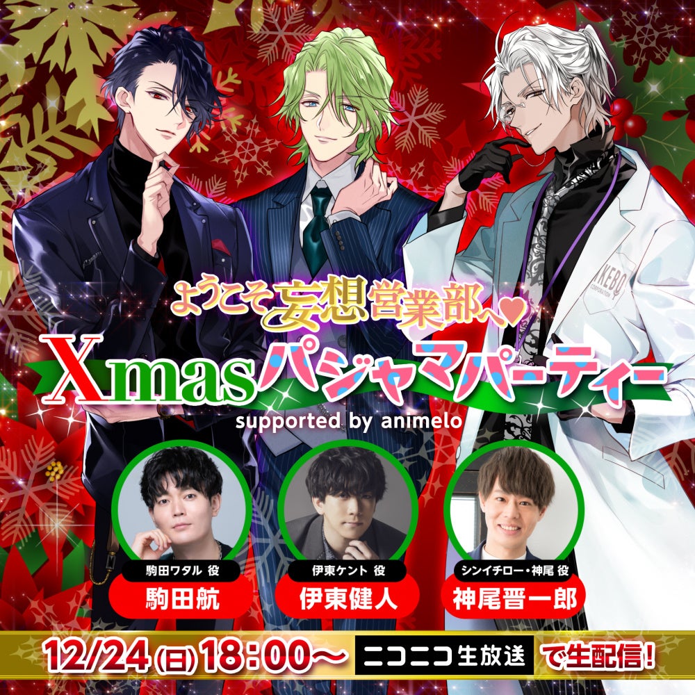 【本日解禁】「ようこそ妄想営業部へ♥Xmasパジャマパーティー supported by animelo」伊東健人、駒田航、神尾晋一郎 が生出演!12月24日(日)18:00~ニコニコ生放送で生配信