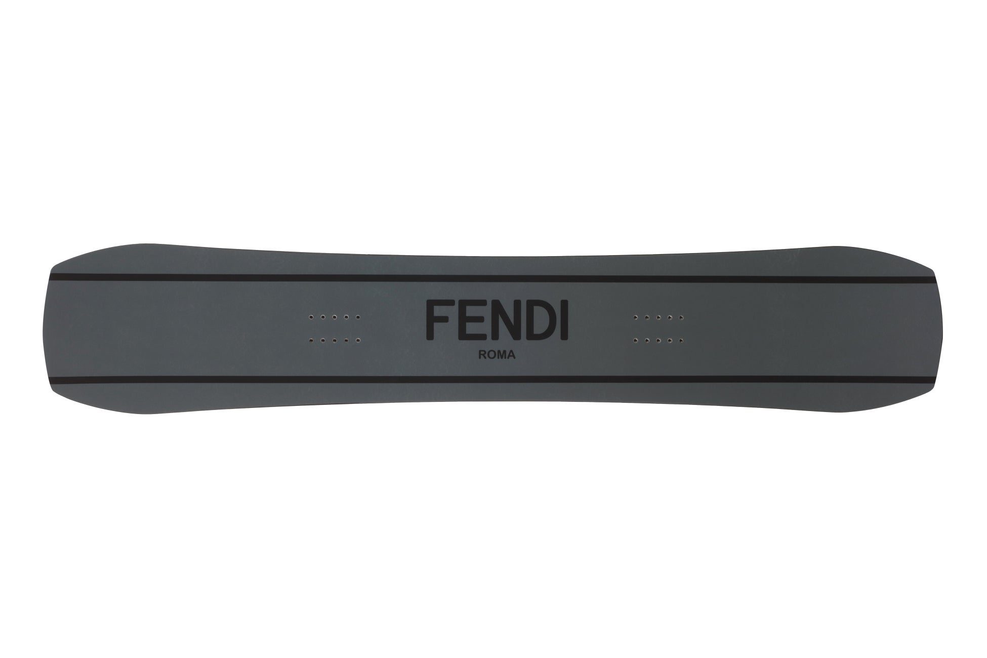 アクセサリーのラインナップも充実しています。シルバーミラー加工を施した「FF」ロゴが印象的なスキーゴーグルとスキー用ヘルメットは、スポーティーでラグジュアリーな表情を見せます。さらに、「FENDI ROMA」のレタリングと裏面に「FF」ロゴをプリントした木製スノーボードも登場し、フェンディならではの美意識と機能性が融合した、ウィンタースポーツギアでゲレンデをお楽しみいただけます。