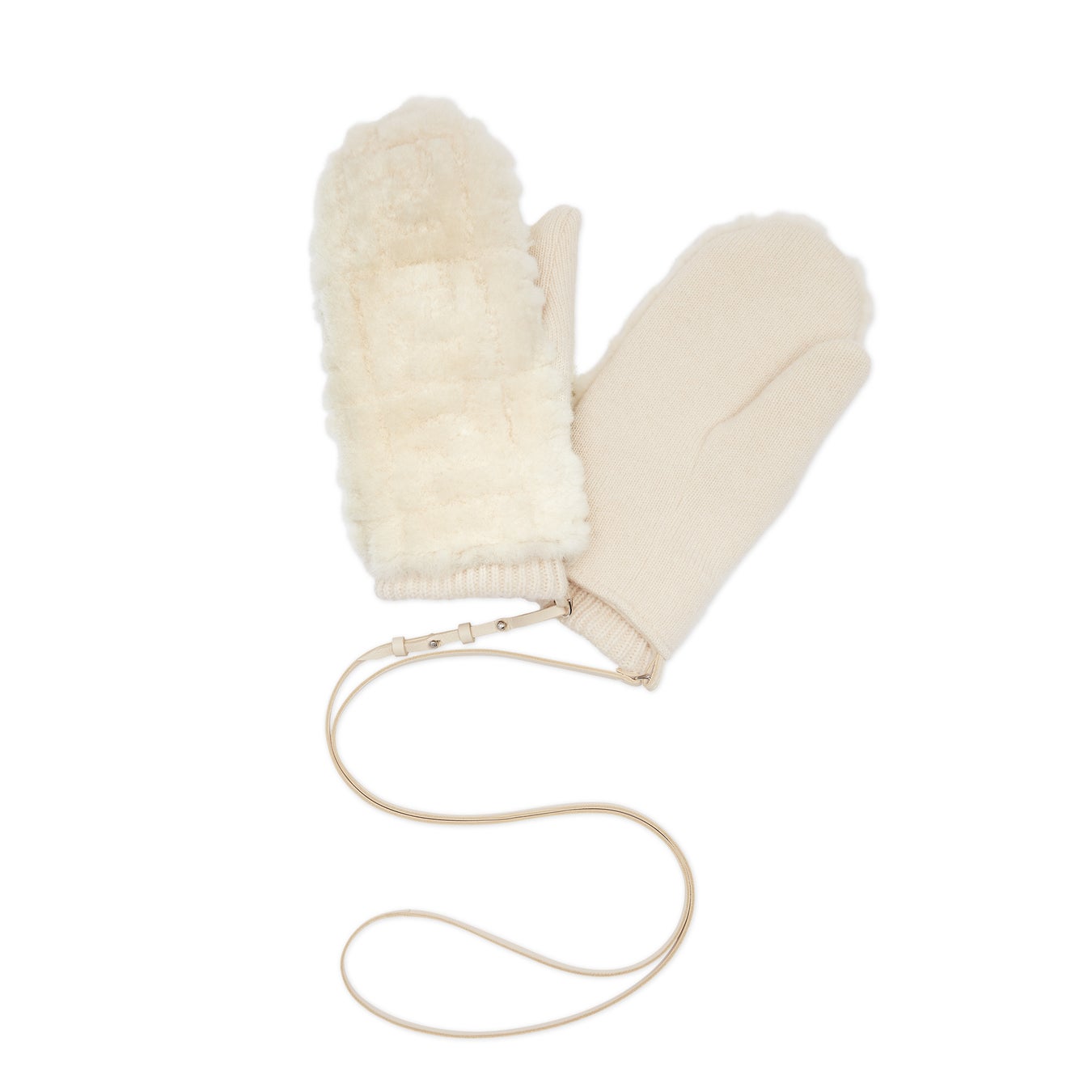 コレクションに柔らかな質感をプラスするスキーアクセサリーも豊富に展開しています。立体的な「FF」ロゴモチーフが特徴的なシープスキン製のミトンは、手のひら部分に同色のウールとカシミアニットファブリックのリブ編みを使用し、調節可能なロングストラップも付属しています。「FF」ロゴモチーフを織り込んだテクニカルファブリック製のスキーグローブはタッチパネル対応可能で、手首部分には、フェンディ 2024-25年秋冬 ウィメンズコレクションとリンクしたストライプモチーフが施されています。ウェアと合わせたヘルメットやバゲットハットも取り揃え、コーディネートの可能性を広げます。