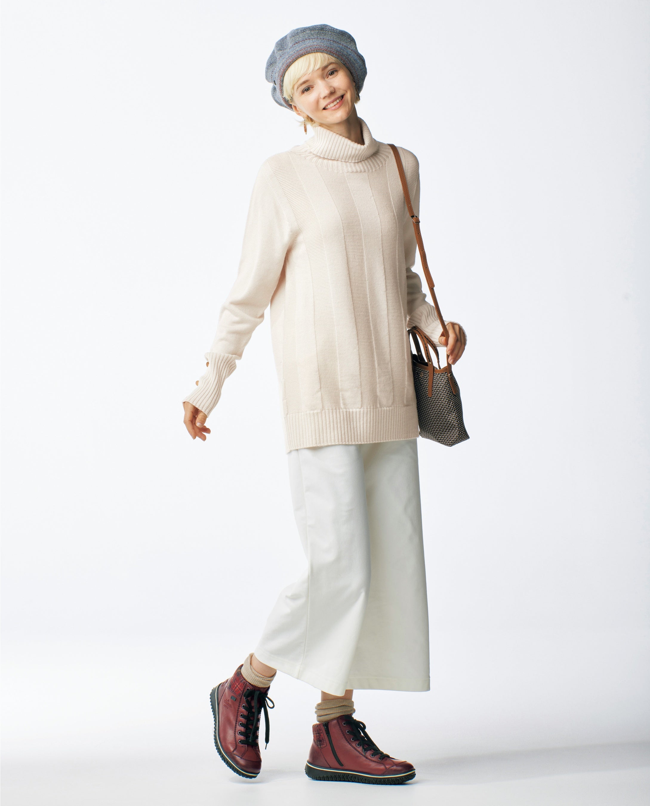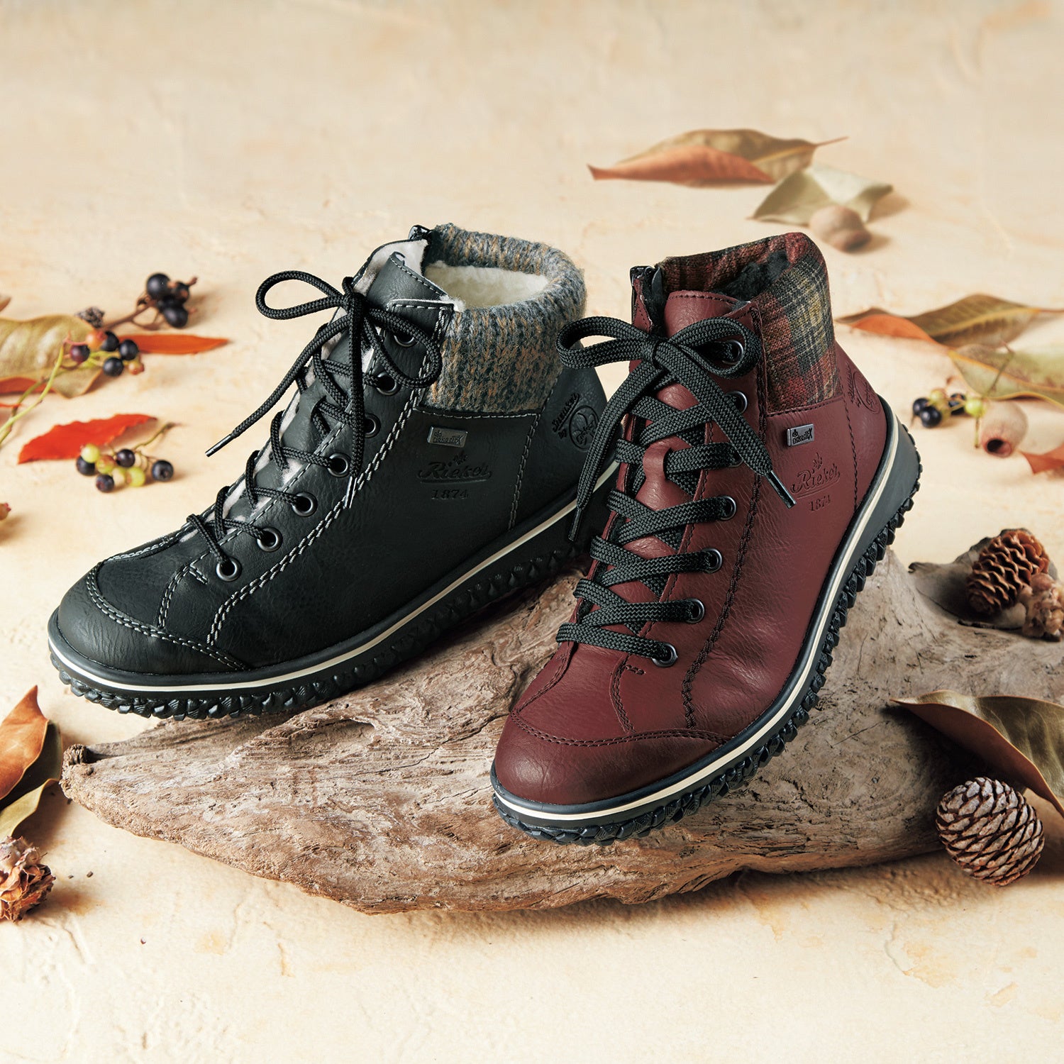 - 【SHOES】履き口に異素材をあしらったワークブーツ風のデザインがお洒落