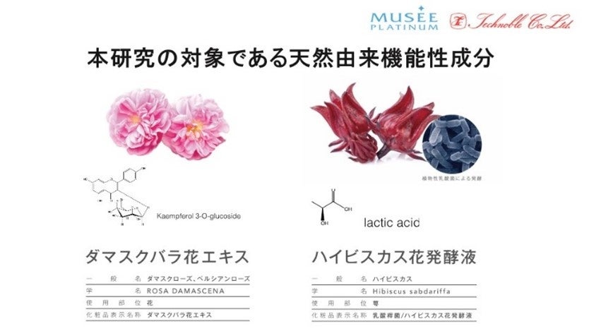 ミュゼプラチナム×テクノーブル共同研究 ダマスクバラ花エキスとハイビスカス花発酵液にたるみ毛穴改善につながる効果を確認
