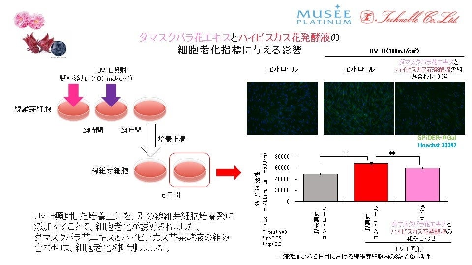 ・ダマスクバラ花エキスとハイビスカス花発酵液の組み合わせによる 細胞老化の抑制効果