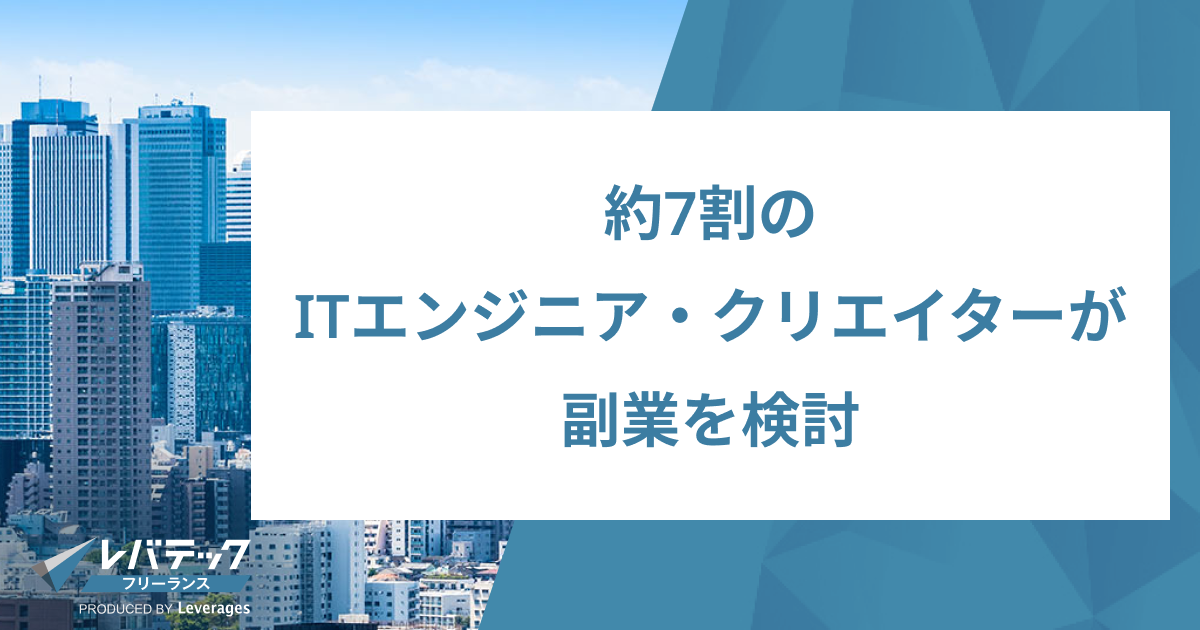 - 約7割のITエンジニア・クリエイターが副業を考えていると回答