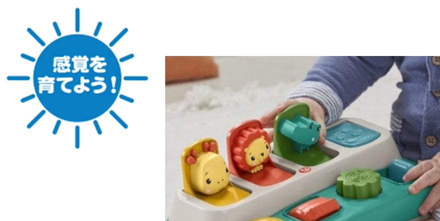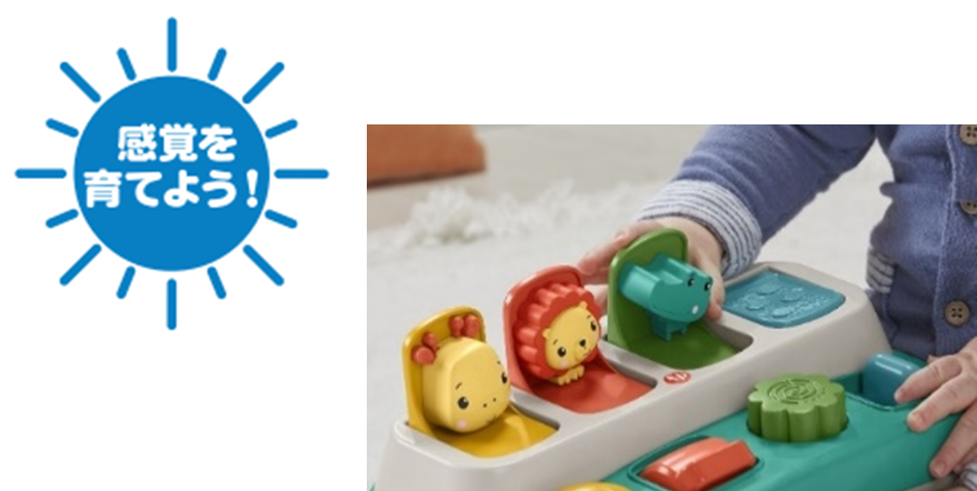 五感をたくさん刺激する遊びが、お子さまの将来の学習意欲、豊かな感性を育む土台になります。フィッシャープライスのおもちゃは、五感を使いながら夢中になれるしかけがいっぱい。「からだ」「あたま」「こころ」をバランスよく育み、お子さまの成長をサポートします。