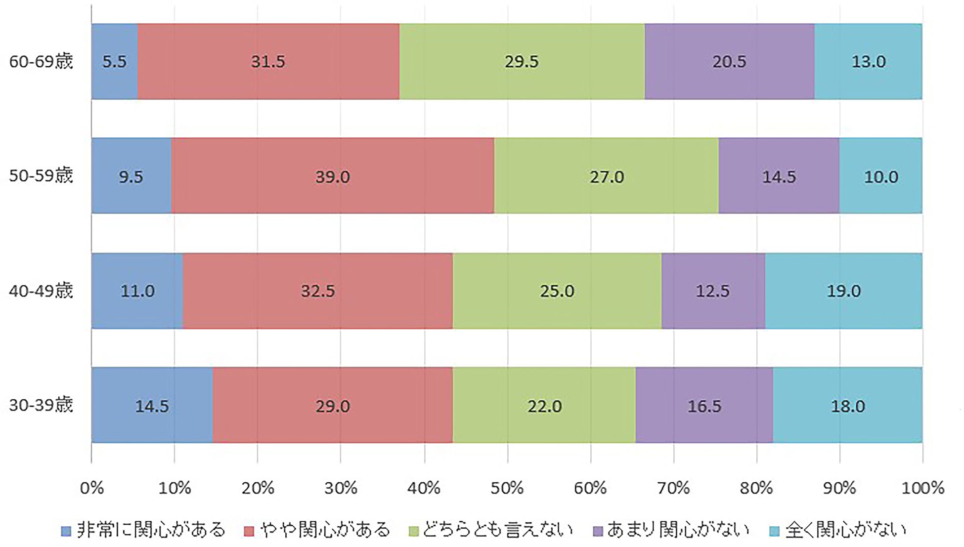 今回の調査ではまず、「フェムケアへの関心」を尋ねました。すると、全体では4割以上の方が「関心がある」と回答し、特に30代と40代では、「非常に関心がある」と答えた方が他の世代に比べて多くなりました。
