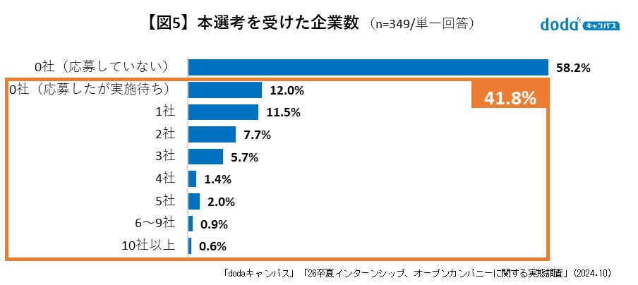 ・本選考(早期選考を含む)については、41.8%の学生が「1社」以上の企業に応募していることが明らかに。