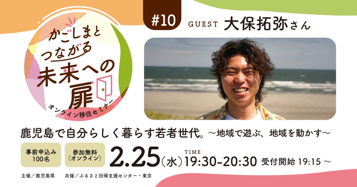 【2月25日(水)オンライン開催】鹿児島で自分らしく暮らす若者世代。~地域で遊ぶ、地域を動かす~|無料セミナー