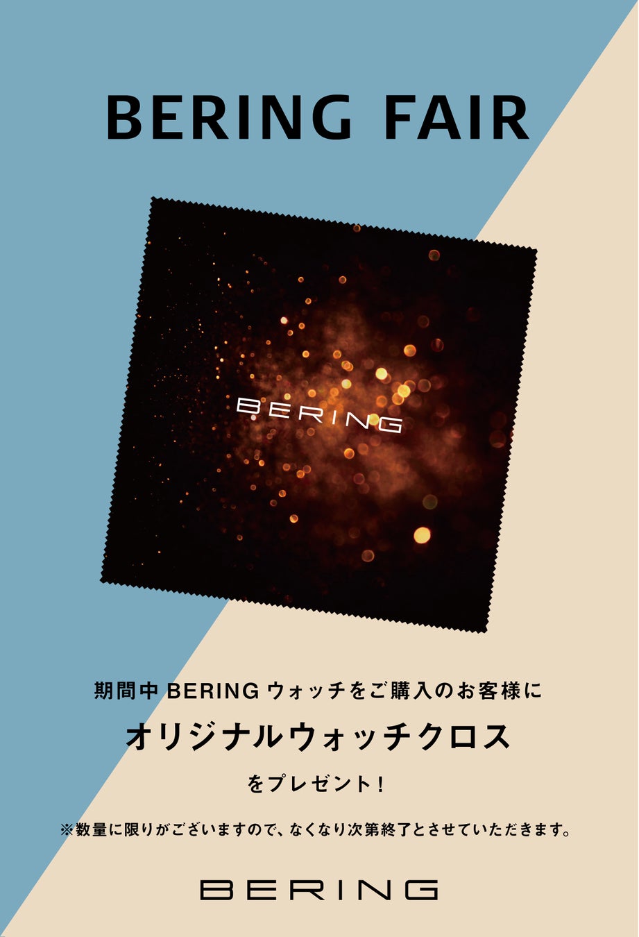 開催内容:期間中、BERINGのウォッチコレクションを種類豊富に展開。BERINGウォッチご購入の方には先着でオリジナルウォッチクロスをプレゼント。無くなり次第終了。