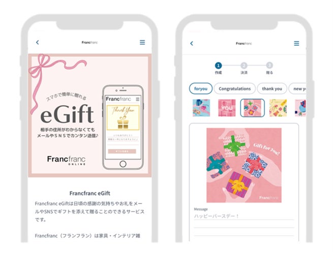 Francfrancでは、お客様のライフスタイルに寄り添った新たなギフト体験をご提供するため、eギフトプラットフォーム事業を展開する株式会社ギフティ(代表取締役:太田 睦、鈴木 達哉/以下、ギフティ)が提供する『eGift System』サービスを導入し、『Francfranc eGift』の販売を開始します。
