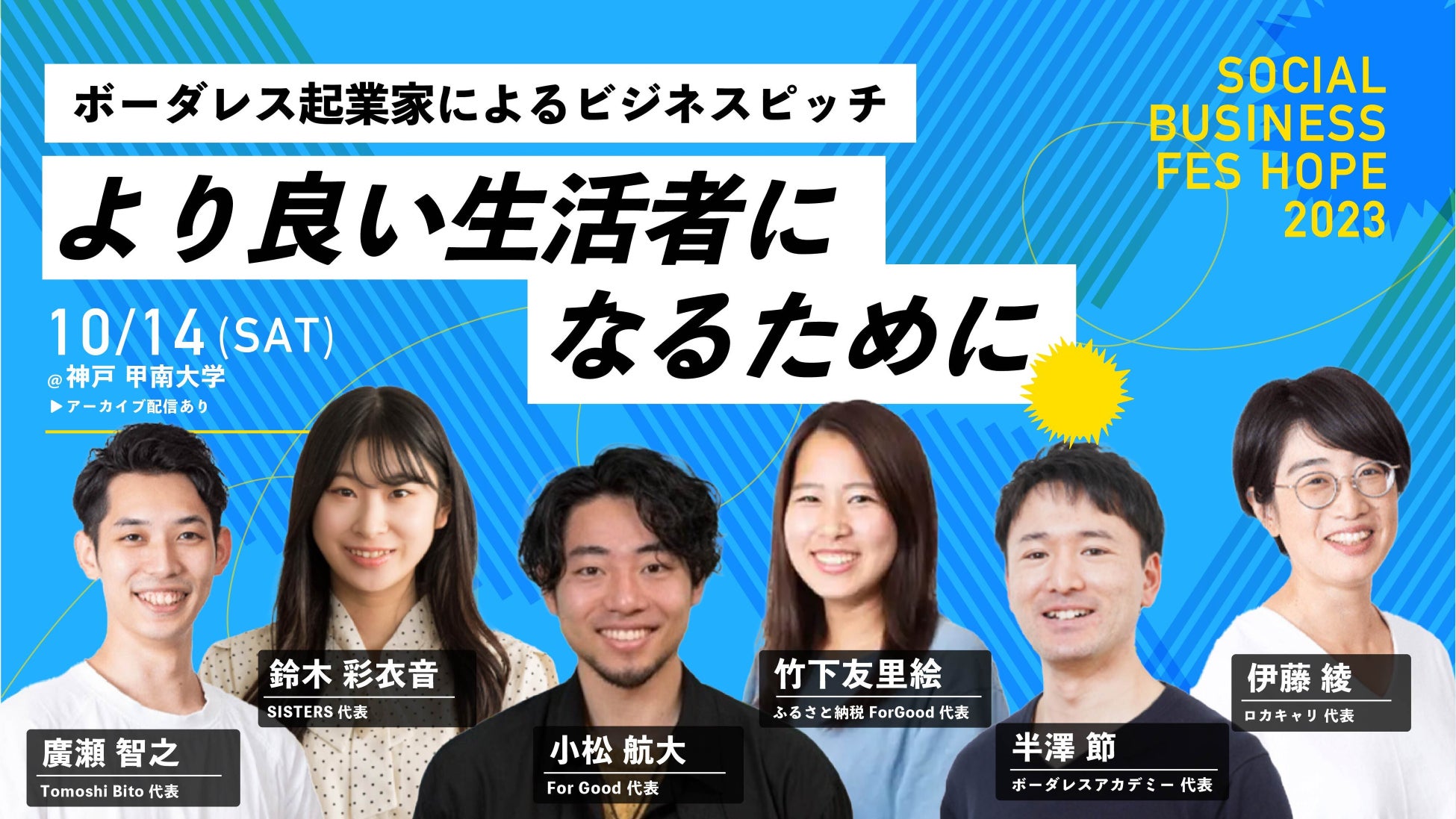 【学生無料】世界13カ国から50名超の社会起業家が集結する「ソーシャルビジネスフェスHOPE 2023」10月14日(土)神戸にて開催
