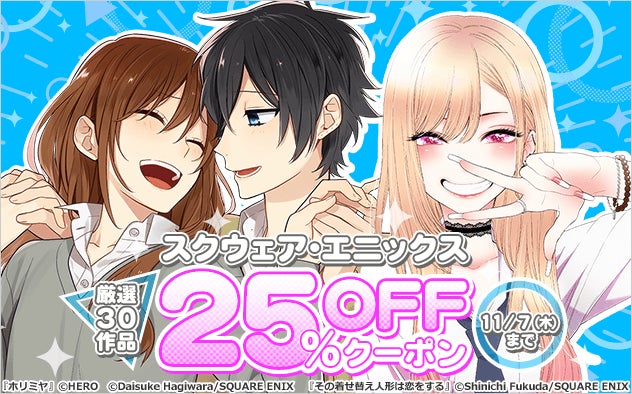 TOPPANホールディングス株式会社のグループ会社である、株式会社BookLive(本社:東京都港区・代表取締役社長:淡野 正)は、運営する総合電子書籍ストア「ブックライブ」にて、11月1日(金)~11月7日(木)の期間中、『ホリミヤ』や『その着せ替え人形は恋をする』など、ブックライブ書店員が選んだスクウェア・エニックスの人気30作品を対象に、1冊の購入から利用できる25%OFFクーポンを配布いたします。