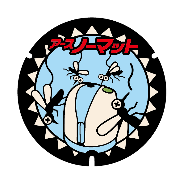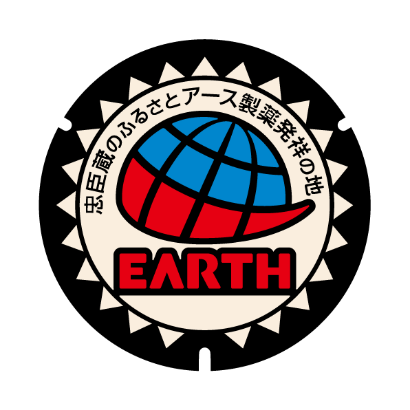 このたび、第2弾として、市民の皆様にアース製薬の存在をより身近に感じていただくことを目的として、アース製薬のロングセラー製品などをデザインした全5種類のデザインマンホールを赤穂市内に設置しました。
