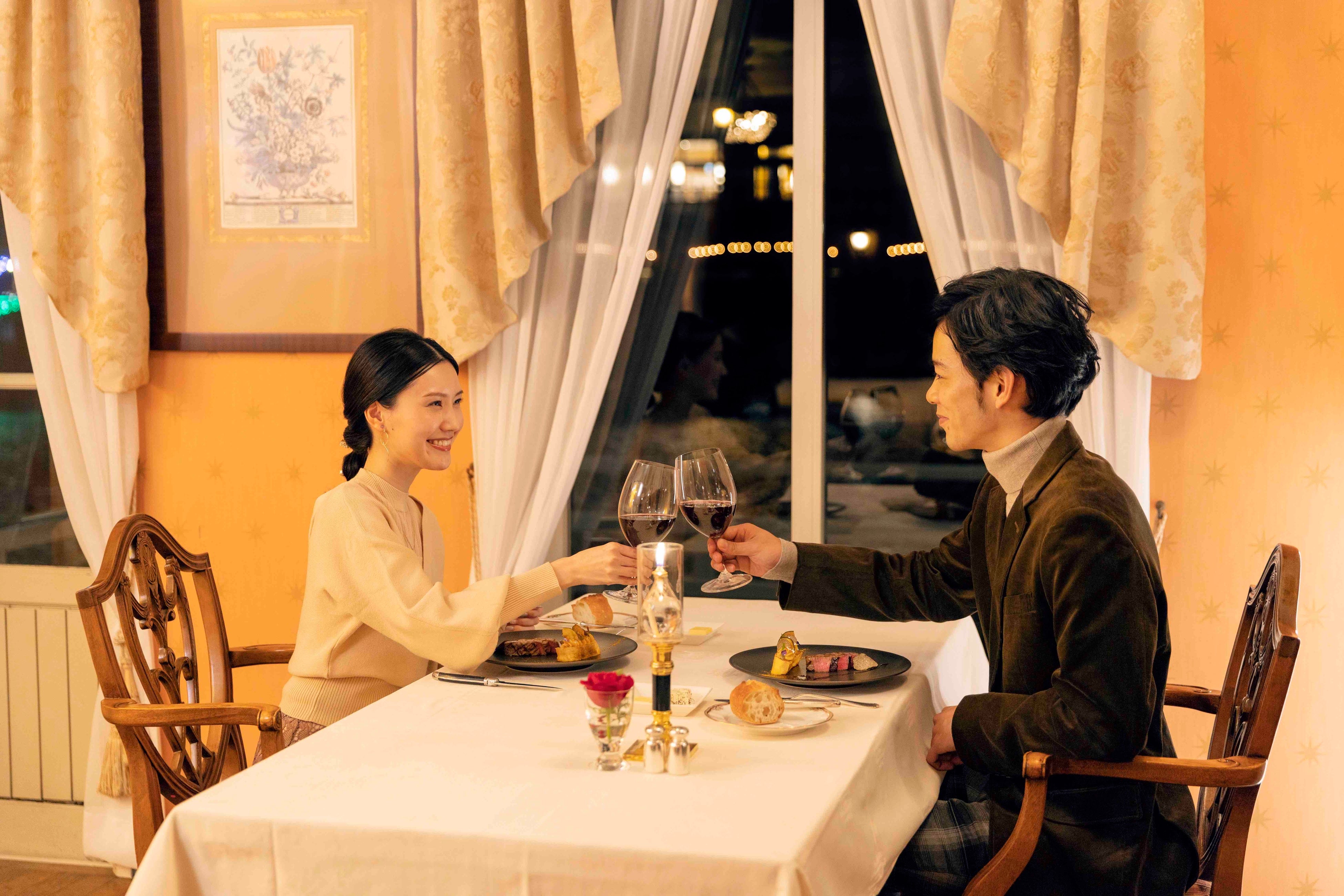 パートナーとはお部屋でクリスマスケーキとシャンパンを楽しめるプランでロマンティックにゆっくり。