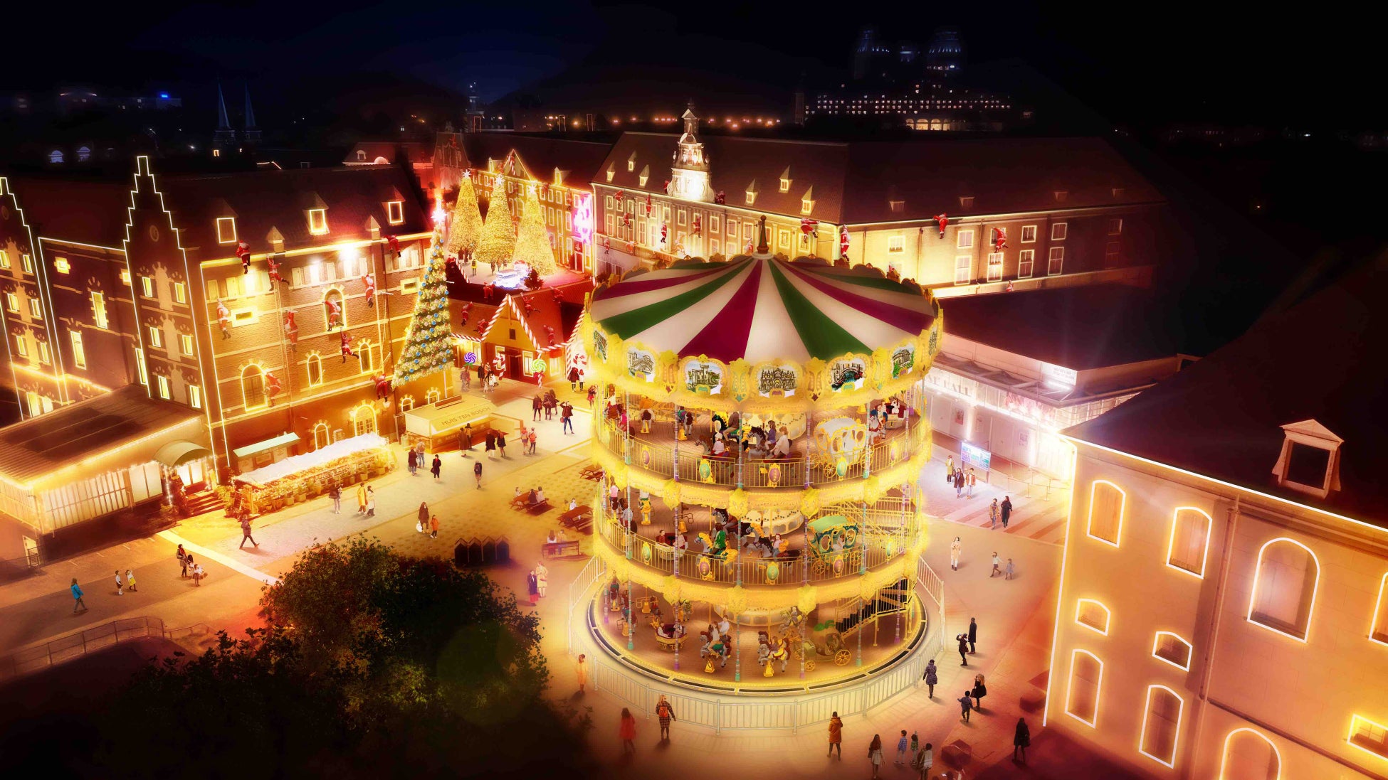 1300万球の輝きのなかに日本初の3階建てメリーゴーラウンドがOPEN「光の街のクリスマス」開催 15mもの高さからヨーロッパの街並みを一望!