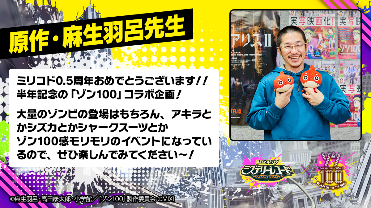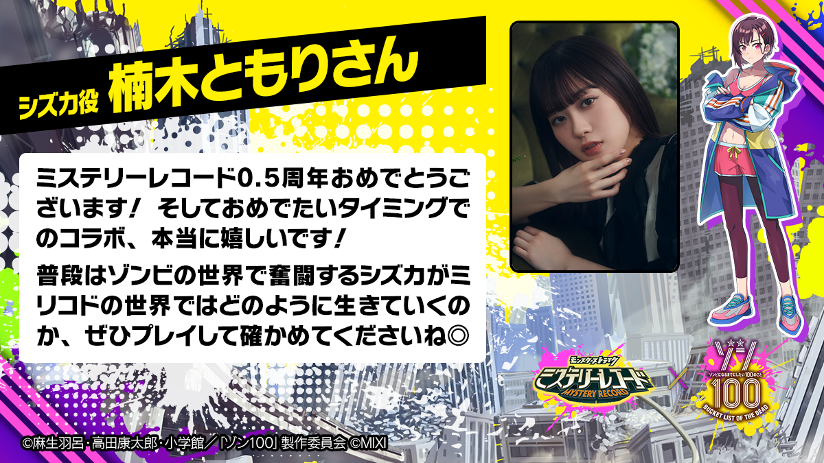 ひらめきアドベンチャー「ミステリーレコード」 TVアニメ「ゾン100~ゾンビになるまでにしたい100のこと~」との初コラボを本日17:00より開催!
