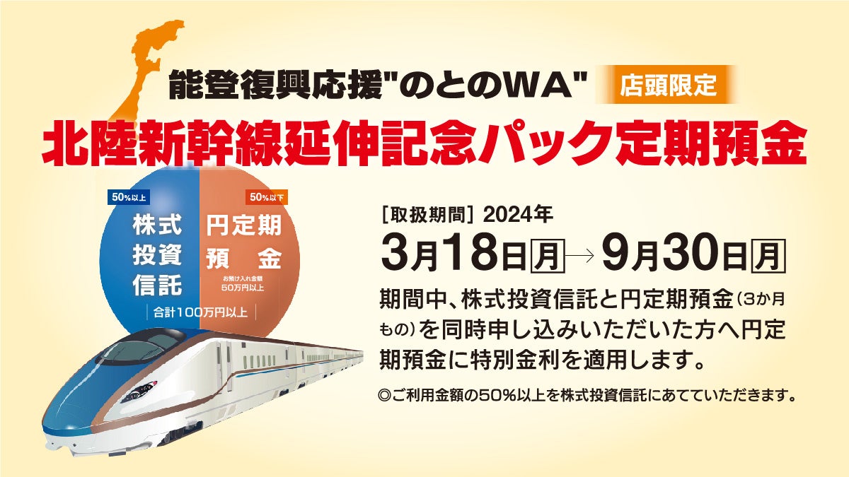 「能登復興応援“のとのWA”北陸新幹線延伸記念パック定期預金」の取扱開始について