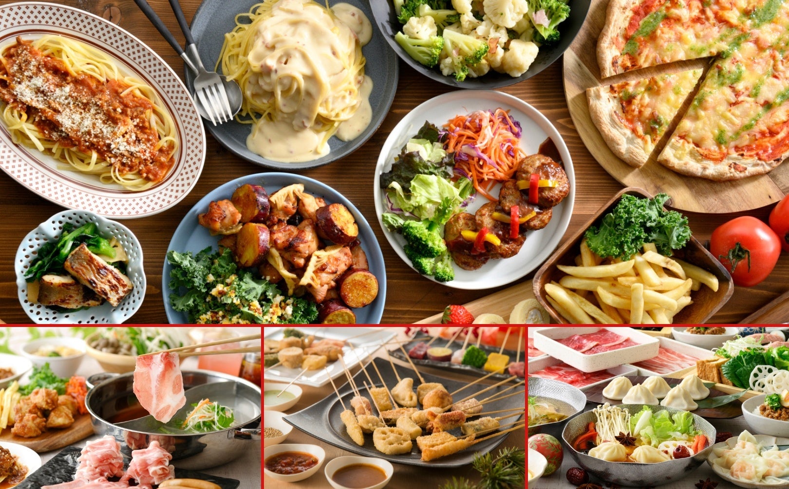 和洋中のお料理が食べ放題の 『グランブッフェ』 や 『エクスブルー』、和食のお料理が堪能できる『ブッフェレストラン八献』など、様々なジャンルで食べ放題をご提供している 「ニラックスブッフェ」 。
