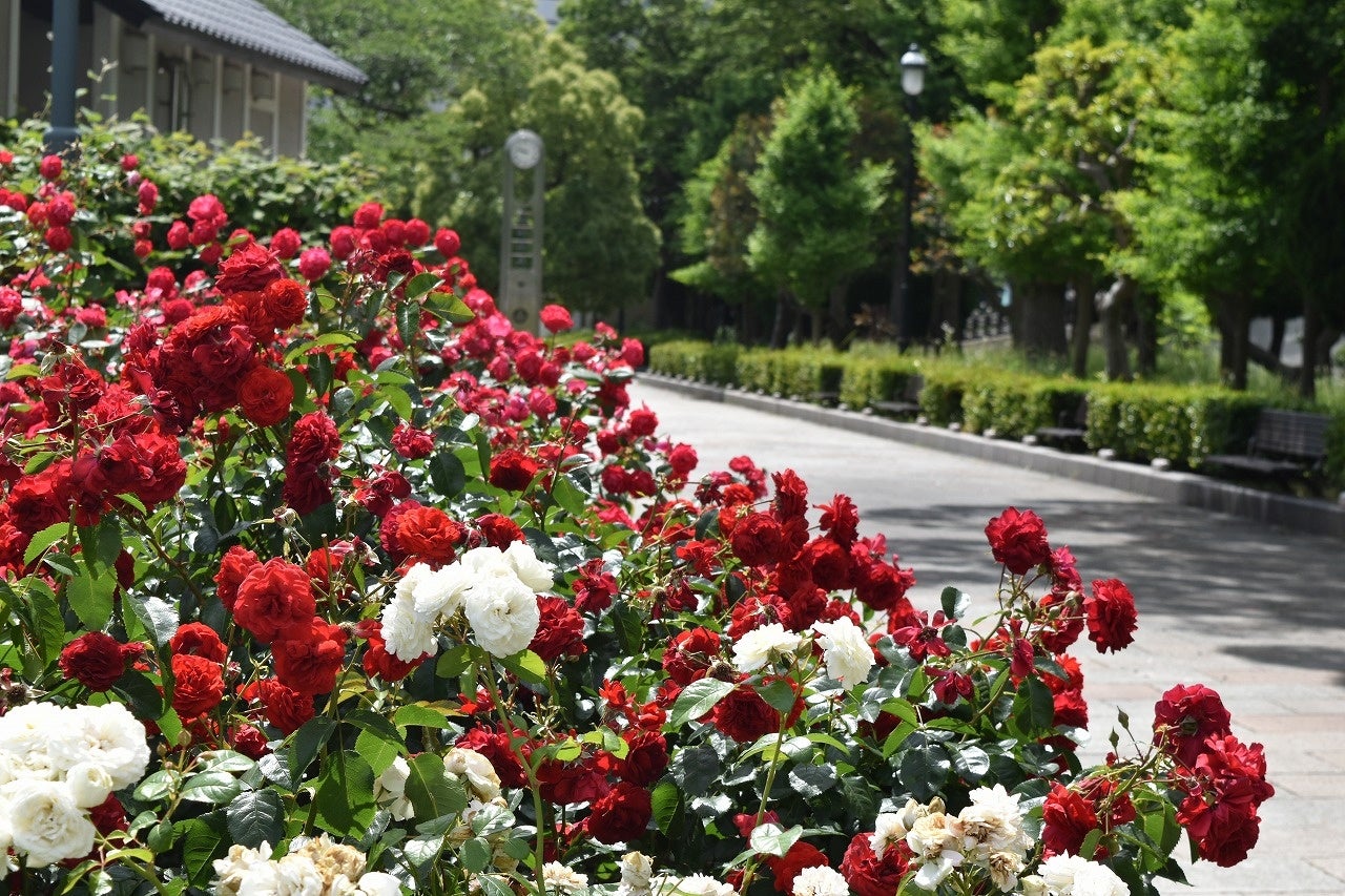 神奈川県横須賀市にある横須賀市ヴェルニー公園(指定管理者:よこすかseasideパートナーズ、代表企業:西武造園株式会社)は、フランス人技師のヴェルニー氏が建設に貢献した旧横須賀製鉄所跡地の対岸に位置しており、バラを中心としたフランス様式の庭園が整備されています。この入園無料のバラ園には約130種類1,300株のバラが植栽されており、横須賀港を臨むバラの花々を自由にご鑑賞いただくことができます。