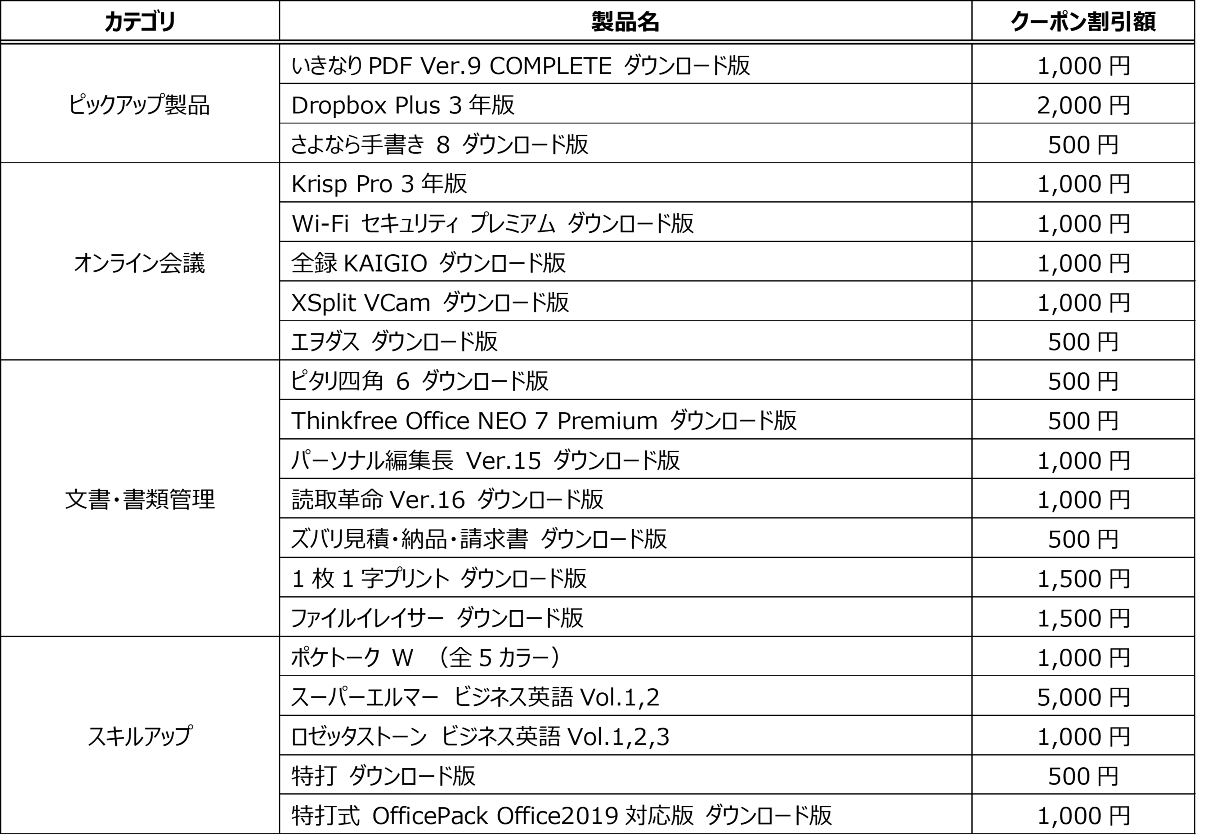 期間中は対象製品に、お得な年度末クーポンを何度でも、何製品にでも、さらに通常は非対象のセール中の製品にもお使いいただけます。仕事の効率化やスキルアップに、年度末クーポンで4月からの快適な新年度を応援します。