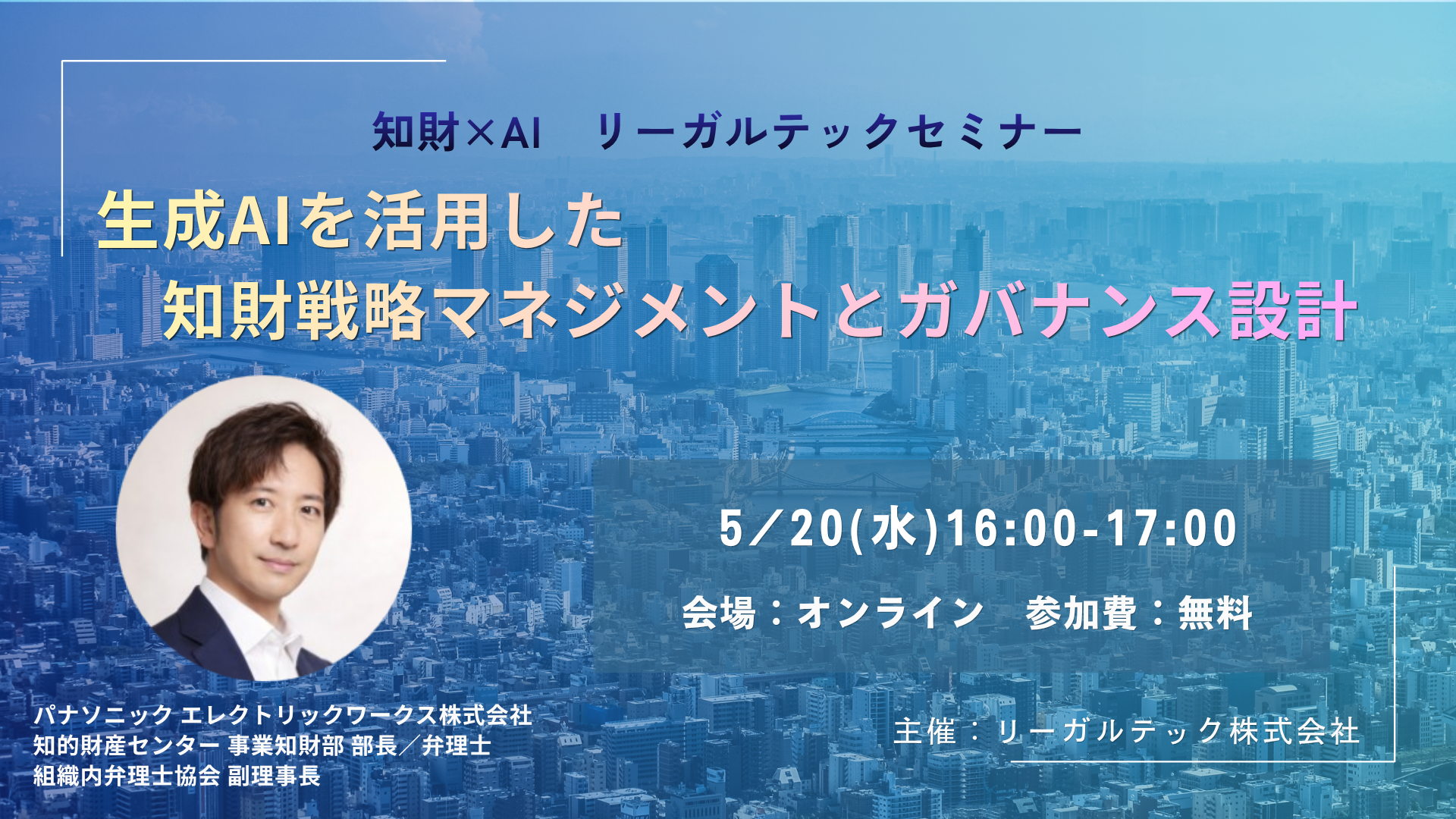 【2026年5月20日(金)16時開催@オンライン】知財×AIリーガルテックセミナー
