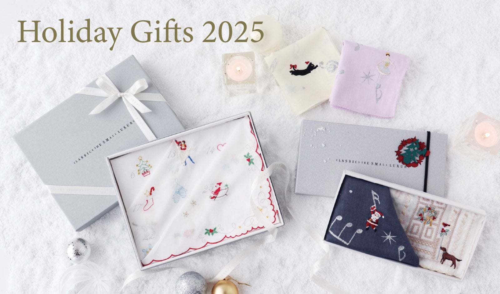 CLASSICS the Small Luxury (クラシクス・ザ・スモールラグジュアリ)は、東京、日本橋人形町を拠点に日本のハンカチーフ業界のパイオニアである、繊維製品企画販売のブルーミング中西株式会社(本社 東京都 中央区 取締役社長 中西一) が運営するハンカチーフ専門店です。ホリデーギフトコレクションを2025年11月5日(水)より発売します。